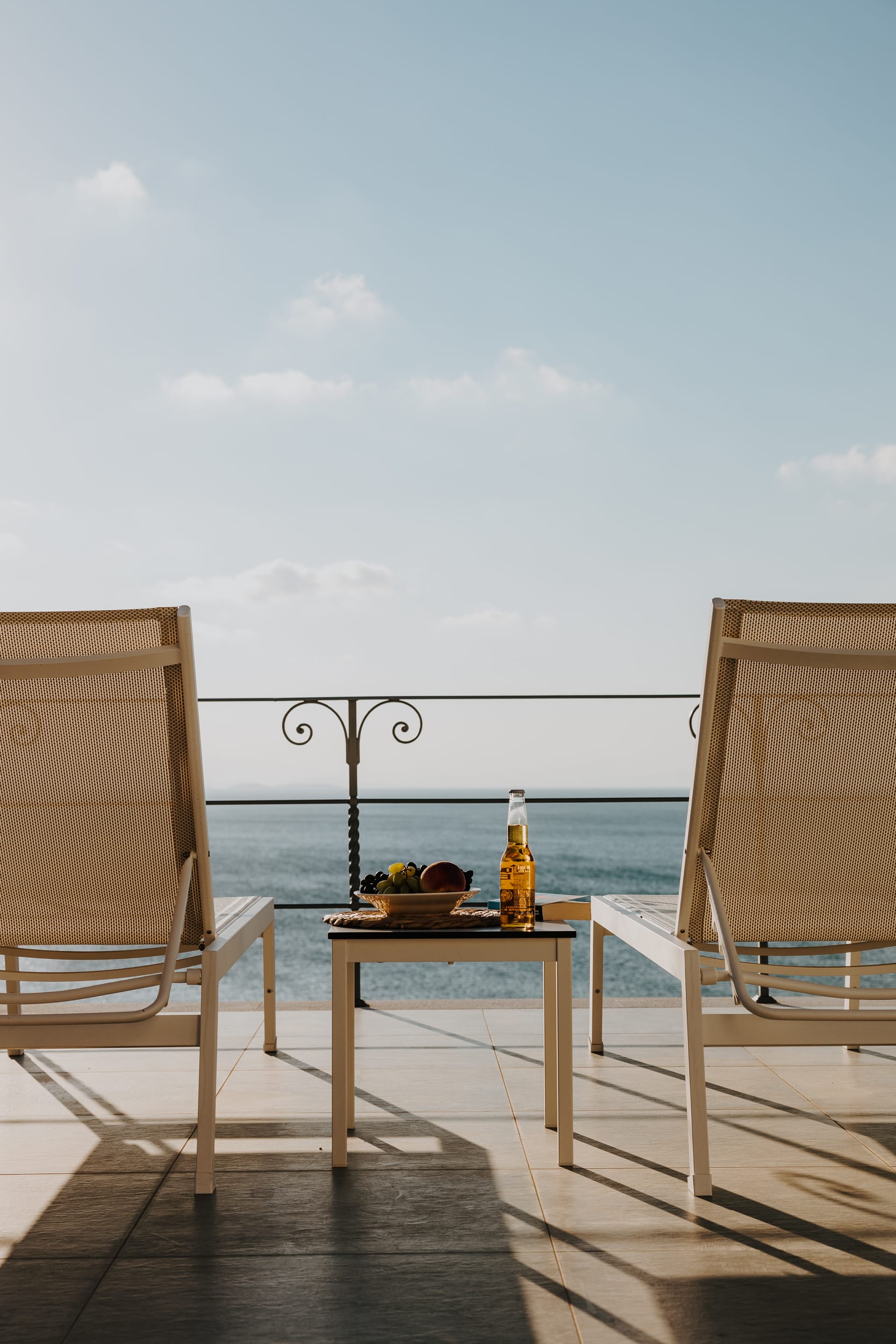 Das Apartment bietet einen Blick auf den Pool sowie einen Panoramablick auf das Meer und den Sonnenuntergang über dem malerischen nahegelegenen Dorf Chorto.